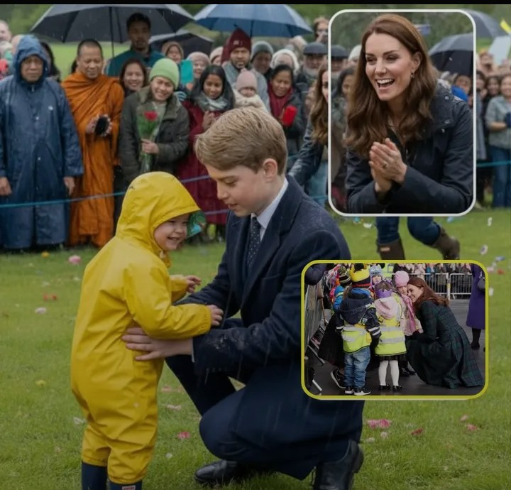 As the royals toured the area in the rain, a small but significant mishap occurred: a two-year-old child fell into a puddle while playing. Without hesitation or waiting for security, Prince Louis—known for his playful and spirited nature—rushed forward to help the toddler up. The little prince demonstrated remarkable empathy and quick thinking for his young age, instinctively offering comfort and support in that spontaneous moment.