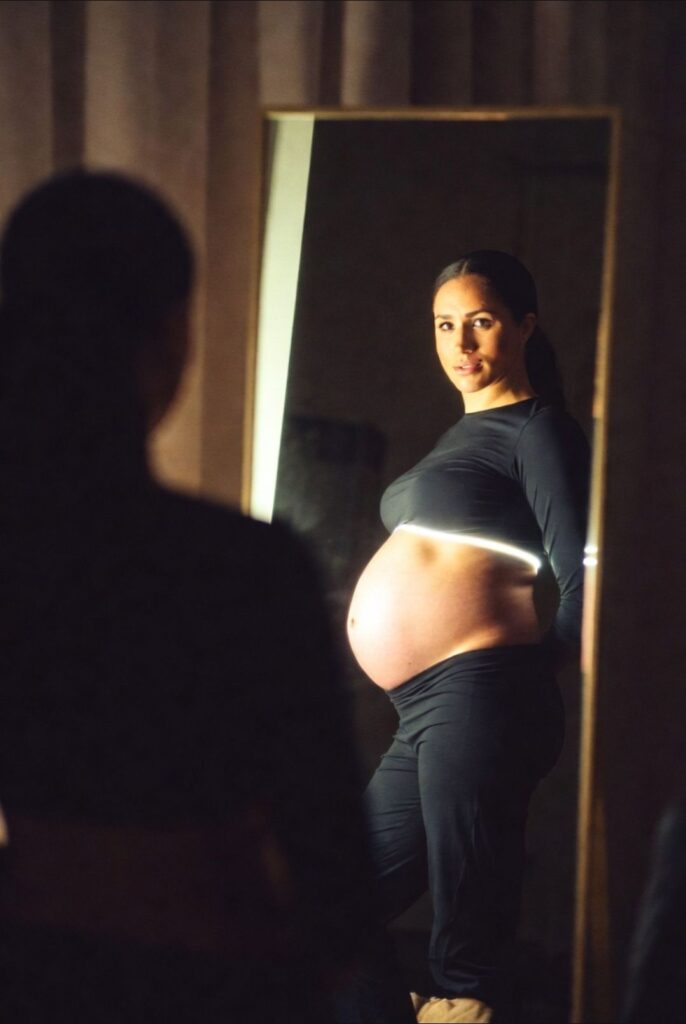 SmartWorks, a brilliant initiative helping women returning to work after unemployment or career breaks, was the perfect photo-op for a pregnant royal: warm, empowering, low-key. Meghan arrived in that now-infamous black short-sleeved dress, the fabric clinging to every curve like a second skin. As she turns slightly in the video, the bump’s unnatural silhouette becomes impossible to ignore – high, rounded, and positioned more like a prop than a growing baby. Real pregnancies don’t have sharp “seams” or require visible support bands. Real pregnancies move with the body, respond to posture, and don’t sit like a perfectly sculpted football strapped on with industrial elastic.
