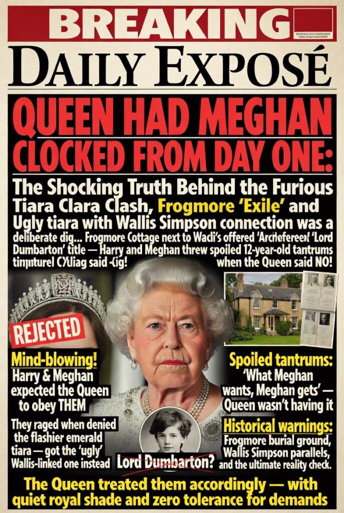 Mind-blowing doesn’t even cover it. The late Queen, with her legendary wisdom and decades of experience handling family crises, had Meghan “clocked” from the beginning. Every move — the tiara, the housing, the titles — seemed designed to quietly remind the Sussexes of their place in the hierarchy while echoing the cautionary tale of Wallis Simpson.