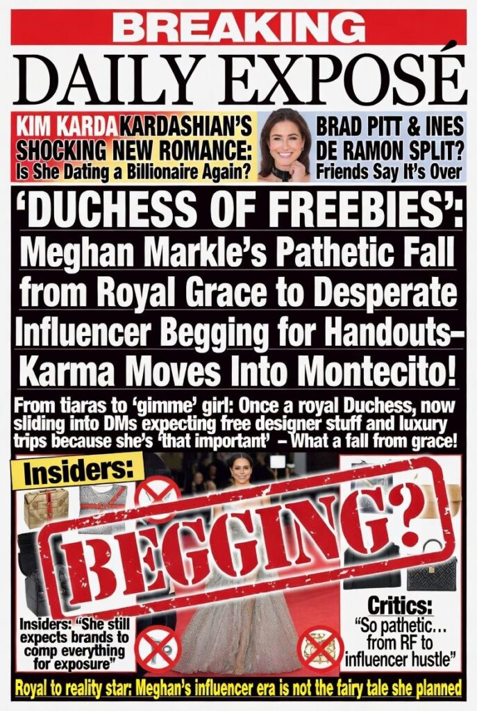 And the karma angle? It’s almost poetic. After years of high-profile exits, public complaints about the institution that elevated her, and a string of rebranding attempts that haven’t quite landed, Meghan finds herself in sunny Montecito doing exactly what she once might have mocked: begging for freebies like countless other influencers fighting for relevance.