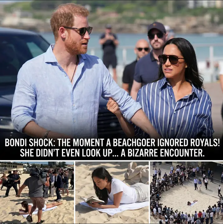 What was meant to be a routine public appearance by Prince Harry and Meghan Markle in Sydney quickly turned into an unexpected viral moment—one that had little to do with royal charm and everything to do with a single, unbothered beachgoer. As the Duke and Duchess of Sussex made their way through Bondi Beach, surrounded by cameras, security, and curious onlookers, a woman lying on her towel calmly continued reading her book, seemingly unaware—or uninterested—in the spectacle unfolding just steps away.