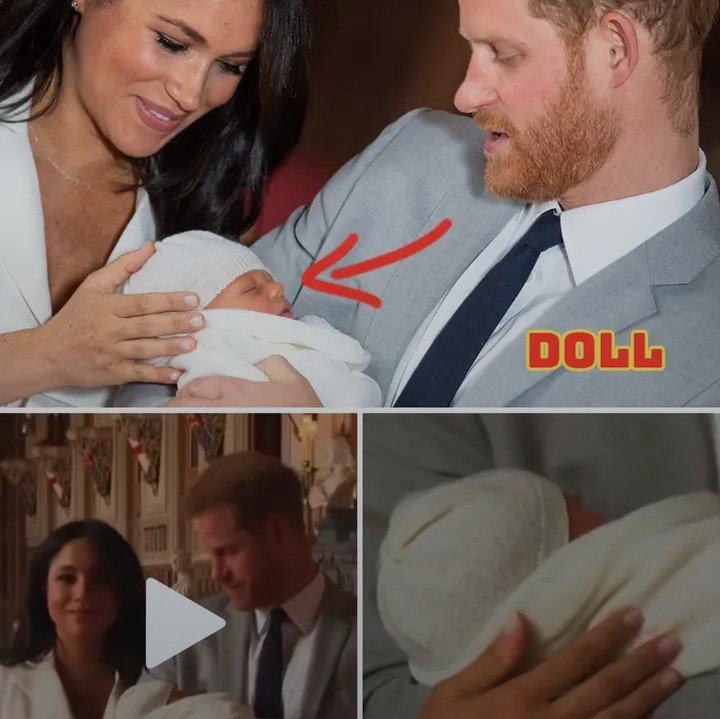 In a stunning twist that has royal watchers buzzing and conspiracy theorists vindicated, newly resurfaced footage from Prince Harry and Meghan Markle’s 2019 presentation of their son Archie Harrison Mountbatten-Windsor is raising serious questions about whether the world was fooled by an elaborate hoax. A 3:06-minute clip shows the Duke and Duchess of Sussex proudly unveiling what appears to be a eerily motionless infant to a sparse gathering of photographers in an almost empty hall at Windsor Castle. But sharp-eared viewers and insiders are now claiming a royal photographer’s hushed whisper – “Is that the kid?” or possibly “Is that their kid?” – betrays the shocking truth: this wasn’t a real newborn, but a lifelike doll. And with Archie still listed in the British line of succession, the implications could shake the monarchy to its core.