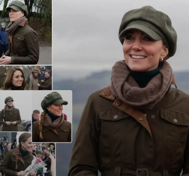 She completed her look with an olive green baker boy hat and brown scarf, as Kate participated in a wellbeing walk organised by the Mind Over Mountains charity