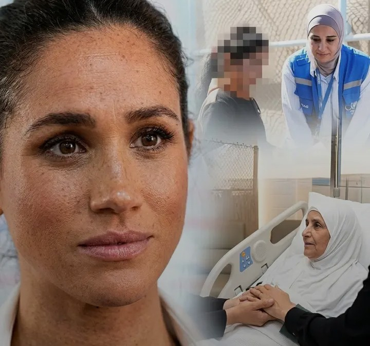 Meghan looked emotional as she met a young man with shattered legs who was evacuated from Gaza to receive urgent care in Jordan.