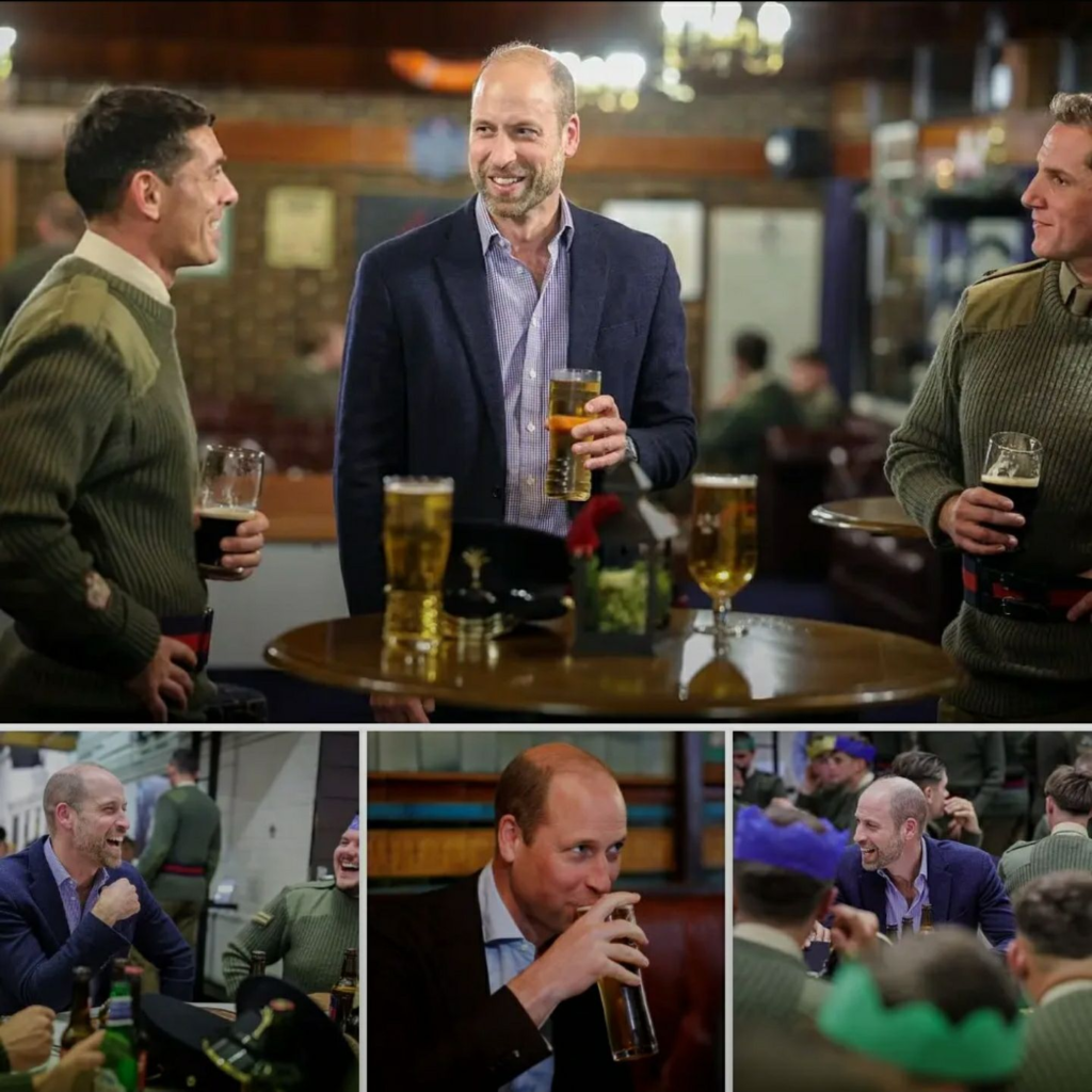 +5View galleryPrince William joined members of the 1st Battalion Welsh Guards in enjoying a pint of beer on Tuesday afternoon during a visit to their barracks in Windsor (pictured)Nicknamed ‘The Taffs’, the guards are jointly headed by William and his father, King Charles, who is their Colonel-in-Chief.William last visited the guards in November last year when he travelled to Westdown Camp in Salisbury to try his hand at firing a sniper rifle.T
