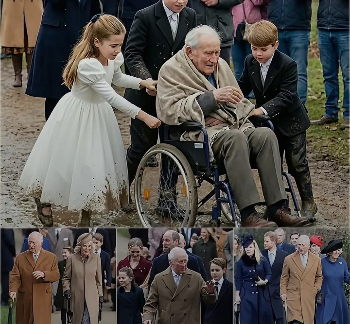 On what began as a simple winter walk, three of Britain’s most recognizable young royals—Prince George, Princess Charlotte, and Prince Louis—turned an ordinary afternoon into an extraordinary display of empathy. Far from palace balconies and ceremonial events, the siblings reportedly rushed to assist an elderly man whose wheelchair had become stuck in thick mud along a freezing park pathway. Witnesses described the scene as spontaneous, heartfelt, and deeply moving.