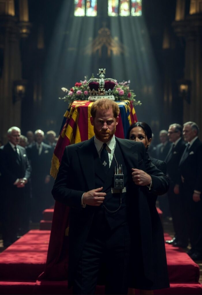 In the solemn shadow of Westminster Abbey, as the world mourned the passing of Queen Elizabeth II — Britain’s longest-reigning monarch and the only grandmother Prince Harry had ever known — one man allegedly turned a moment of profound national and personal grief into something far darker. New disturbing footage and persistent allegations claim that Prince Harry attended his grandmother’s funeral wired with a concealed microphone, covertly recording private conversations with his own family members during one of the most sacred and vulnerable gatherings in modern royal history.