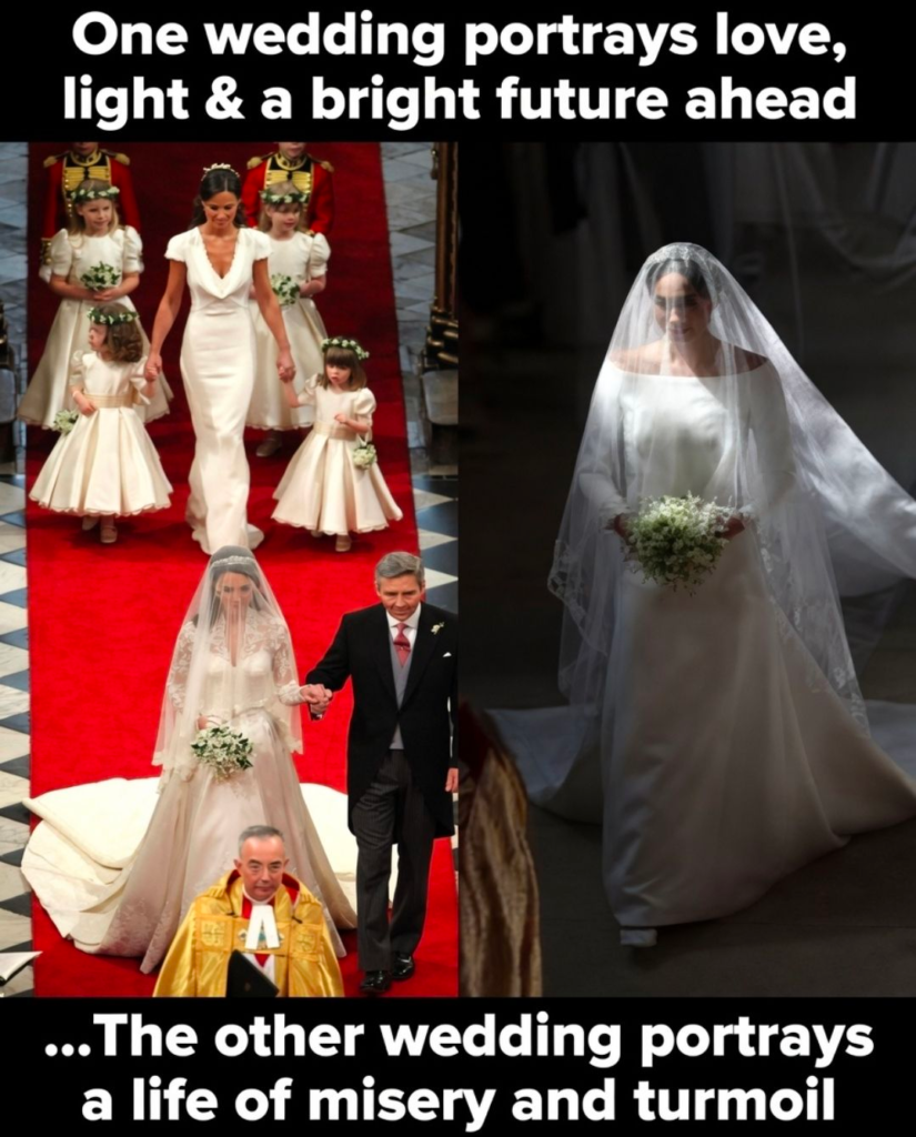 Of course, skeptics will call this retrospective pattern-seeking. “Hindsight is 20/20,” they say. But the viral X post – already racking up tens of thousands of views and hundreds of comments – proves millions feel the same chill. Replies flood in: “Catherine brought sunshine into William’s life while the other brought darkness.” “Harry’s wedding looked like walking into a crypt.” “Demons thrive in shadows.” The internet has spoken – and the side-by-side images are impossible to refute.