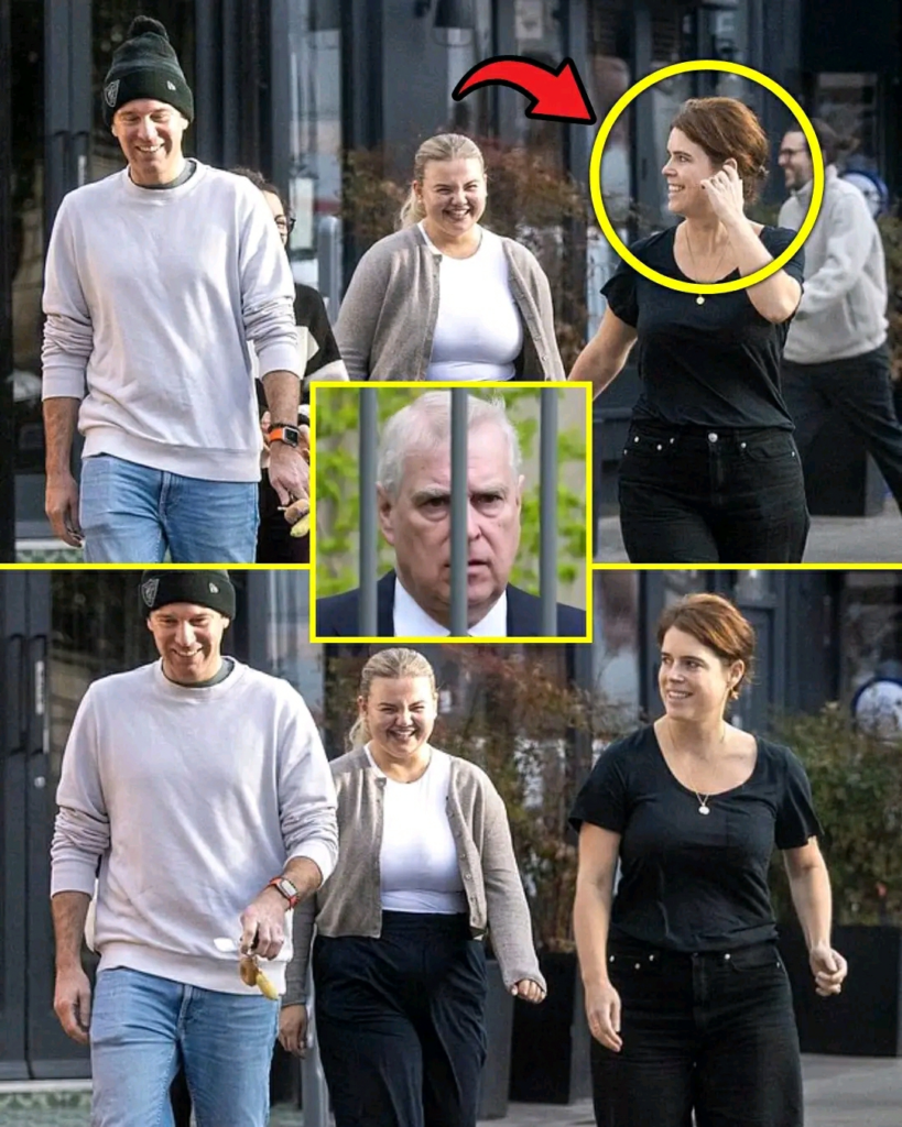 Eugenie looked happy and relaxed despite her father’s loss of his titles and home