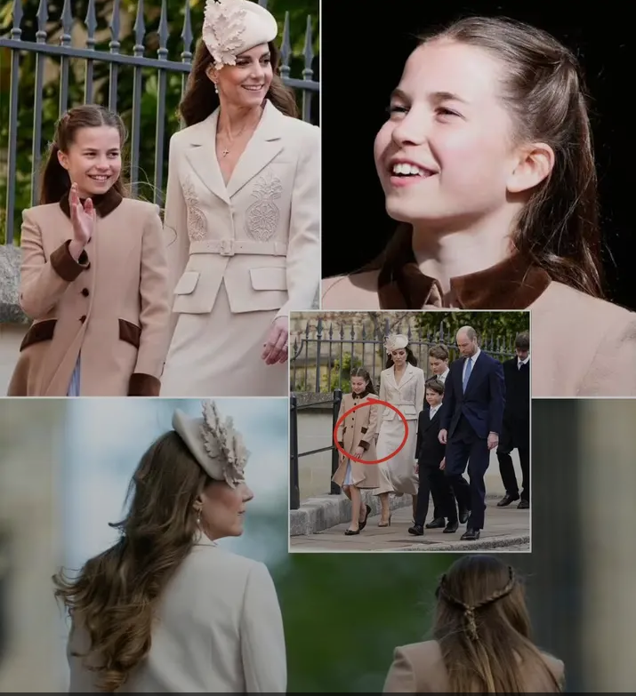 Royal fans were delighted after they caught a new glimpse of Princess Charlotte during today’s Easter Sunday church service in Windsor. The Prince and Princess of Wales’s middle child looked all grown up and matched her mother, as they both wore cream and beige outfits.