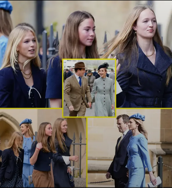 Harriet Sperling’s daughter Georgina, Isla Phillips and Savannah Phillips arriving with Peter Phillips and Harriet Sperling to attend the Easter Service at St George’s Chapel, Windsor Castle, Berkshire© PA Images via Getty Images