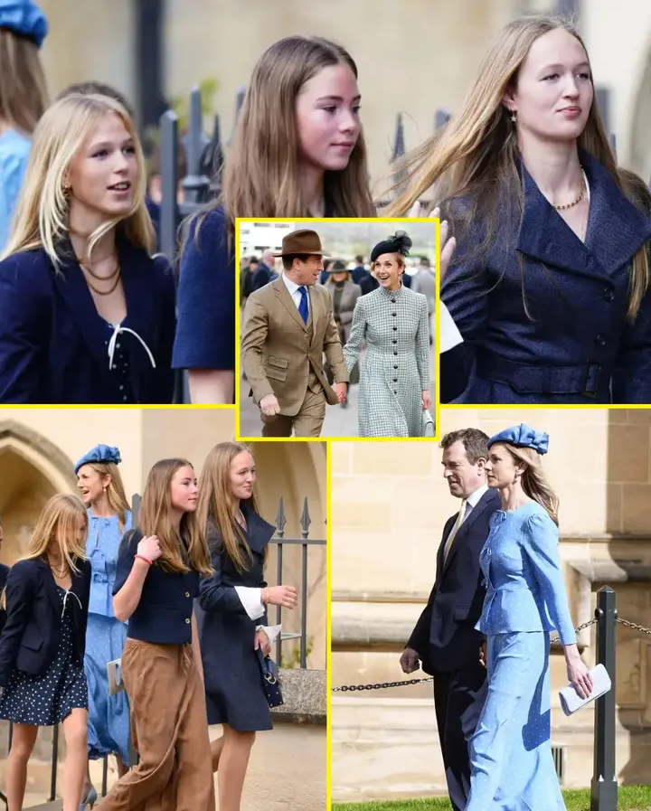 Harriet Sperling’s daughter Georgina, Isla Phillips and Savannah Phillips arriving with Peter Phillips and Harriet Sperling to attend the Easter Service at St George’s Chapel, Windsor Castle, Berkshire© PA Images via Getty Images