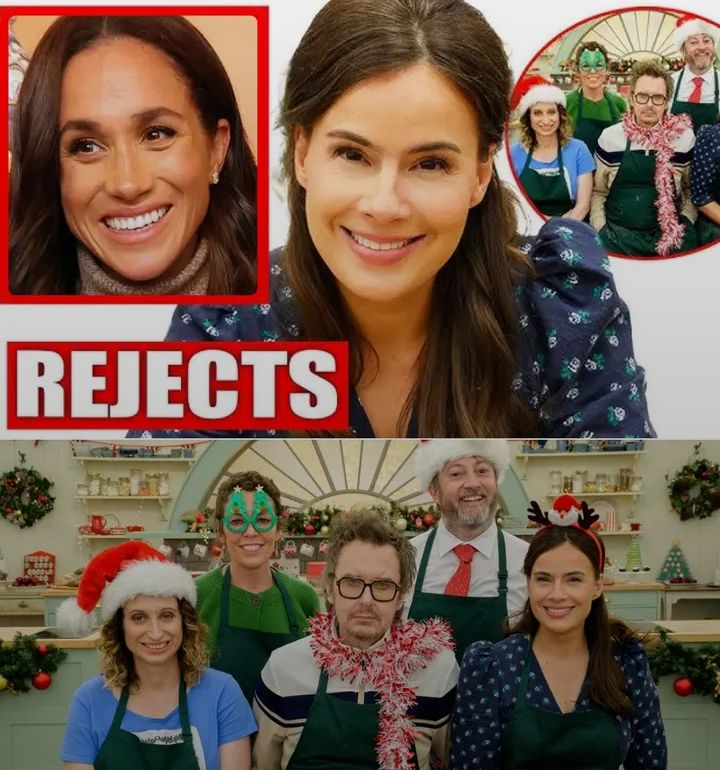 According to sources close to the production, Meghan approached the team in hopes of appearing on the star-studded festive episode, aiming to charm viewers with her baking skills and perhaps soften her public image in the process. However, Sophie Winkleman, known for her no-nonsense approach and sharp wit, refused to bend the rules. “It’s not about personal feelings,” an insider said. “Sophie made it clear that the Bake Off is a team effort, and appearances have to be earned, not demanded. Meghan simply couldn’t join the group this year.”