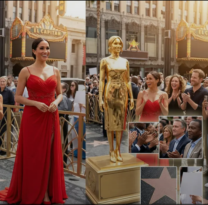 The iconic stretch of Hollywood Boulevard was transformed into a site of modern pilgrimage today as Meghan Markle shattered a century of tradition during a ceremony that moved from typical celebrity glitz to profound emotional revelation. Thousands of devotees, some who had camped on the sun-baked asphalt for days, stood in stunned silence as a massive velvet shroud was pulled away to reveal a full-body,