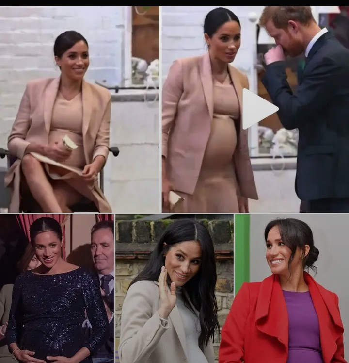 The conspiracy ignited during Meghan’s first pregnancy with Archie in 2019, when online sleuths began dissecting every public appearance. One infamous moment came from a royal engagement where Meghan crouched down to speak to children. As she stood up, her bump seemed to dent inward before audibly “popping” back out. “If that isn’t proof of a fake bump, then we don’t know what is,” tweeted royal watcher @royalsinsider_, highlighting the bizarre adjustment that looked like Meghan was fixing a slipping accessory rather than supporting a real baby. Social media exploded with comparisons to actual moonbumps, showing identical shapes and behaviors – high, firm, and unnaturally positioned, sometimes even growing out of her ribcage.