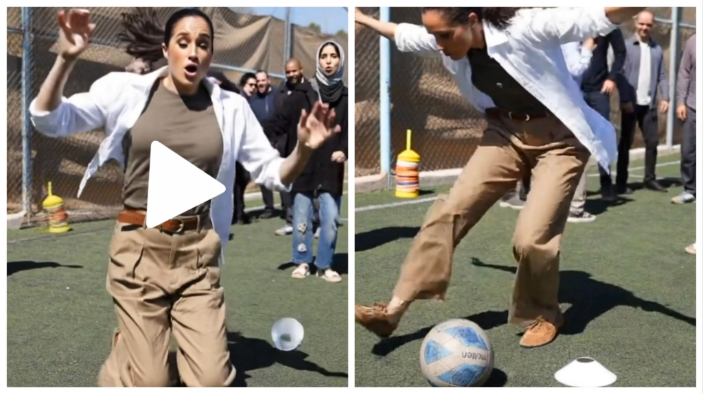 In a moment that’s already going mega-viral and leaving football fans in absolute stitches, Meghan Markle, the Duchess of Sussex, stepped onto a makeshift pitch in Jordan and delivered a masterclass in ball control that has people seriously questioning if Cristiano Ronaldo and Lionel Messi need to start training harder. Yes, you read that right – the former *Suits* star and humanitarian powerhouse just put the two greatest footballers of all time to shame with a single, effortless kick that’s blowing up online!