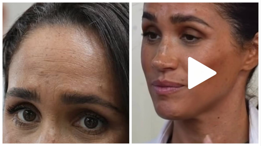 The images capture Meghan in action at the Za’atari Refugee Camp, ponytail swinging as she kicked a soccer ball with children, dressed in a crisp white shirt layered over khaki, with wide-leg tan trousers. While the focus was meant to be on her heartfelt interactions with refugees and her partnership with the World Health Organization, the internet quickly shifted to her hair. In several high-resolution shots, particularly those showing her hair pulled back tightly, faint gray hairs are visible at the roots and along the hairline – unmistakable proof that time is catching up, even to Hollywood’s polished duchess.
