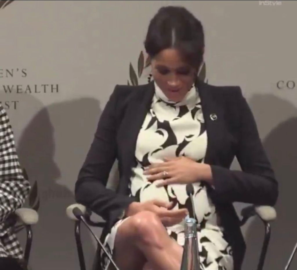 This theory gained traction after videos surfaced showing Meghan’s bump appearing to “fold” or “deflate” during public outings, like when she knelt down at a 2018 event in Birkenhead and the belly seemed to crease unnaturally. youtube.com +1Fast-forward to the 2019 panel, and the clues pile up. Body language analysts point to Meghan’s overly protective cradling as a telltale sign of insecurity about the prop slipping. “Pregnant women do touch their bellies, but hers looked scripted, like she was adjusting a costume,” notes one expert in a viral YouTube breakdown. youtube.com