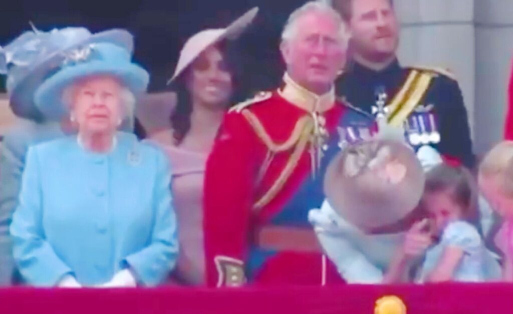 #### The Viral Moment That Exposed the Truth The incident occurred during Queen Elizabeth II’s official birthday parade on June 9, 2018 – Meghan’s very first balcony appearance as a royal. The family had assembled to wave to adoring crowds and watch the RAF flypast, a tradition steeped in pomp and unity. Little Charlotte, dressed adorably in a blue floral frock matching her mother’s outfit, was excitedly clapping and waving alongside her brother Prince George and cousin Savannah Phillips. But in a heart-wrenching split-second, the toddler slipped backward, appearing to bonk her chin on the railing before tumbling to the floor in tears. Kate Middleton reacted instantly like any devoted mother, lifting Charlotte into her arms for comfort. The young princess rubbed her eyes, clearly upset, as the nation collectively held its breath. But in the background? Harry and Meghan.